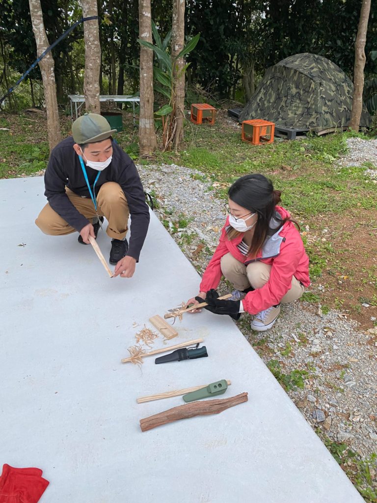 焚火講習はファイヤースターターを使って火種から焚き火を作ります。