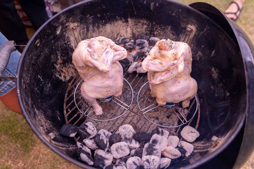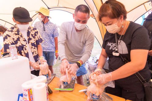 ビア缶チキンは、仕込みが大事。コツを学んで丁寧に仕込んでいました。