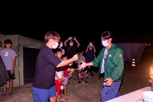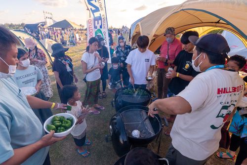 スタッフはNEOSの会長が今回伊平屋に来ることができなかったため、衣装(CHUMSのコックさん)に思いを託し(?)張り切って頑張っていました。