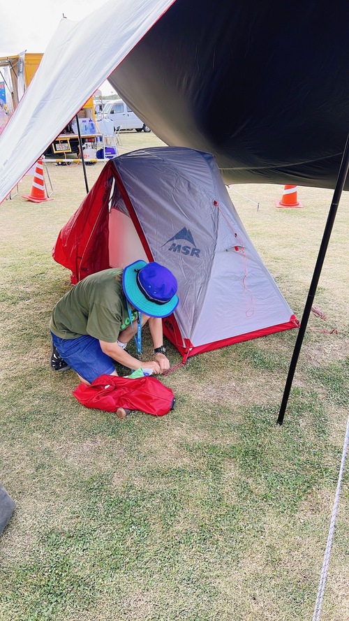車を持ち込めるオートサイトは即日予約が埋まりましたが、キャンプツアーでは通常サイトでも荷物はコンテナで運んで楽々♪