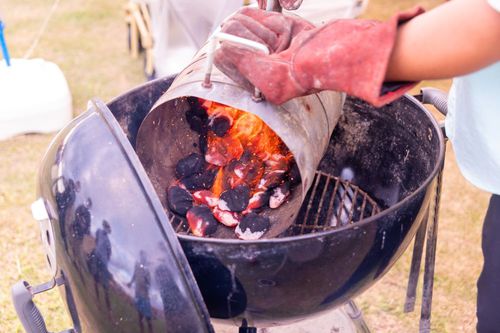 豆炭で火をつけて、野菜を丸ごと焼き上げていきます。
